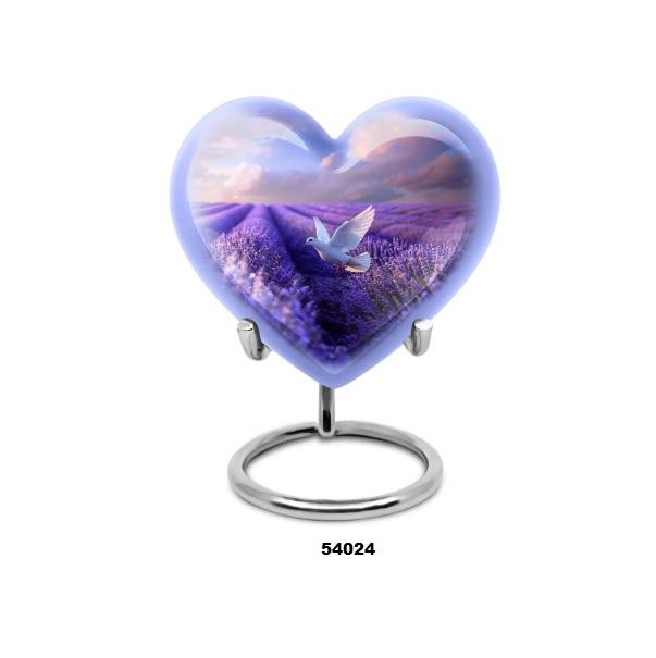 Top Haute Qualité Belle Coeur Violet Oiseau En Aluminium Coeur Souvenir Urnes Avec Support