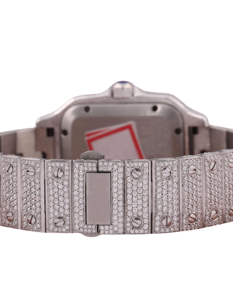 Montre Diamant de Haute Qualité pour Usage Quotidien Intensif en Or Blanc avec Cadran Romain Gravé Discret, Prête à l'Expédition, Quartz, Acier Inoxydable