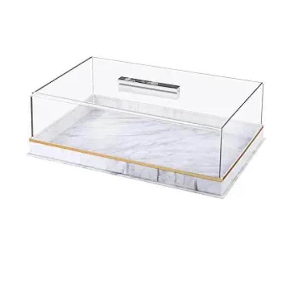 Support à gâteau rectangulaire en marbre blanc de haute qualité avec support à gâteau à 2 étages en bois massif pour les dîners, les mariages, les anniversaires