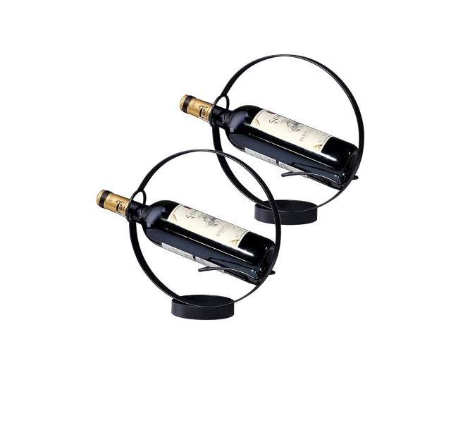 Support de bouteille de vin rond en métal noir mat de haute qualité à bas prix pour la décoration de table, style vintage.