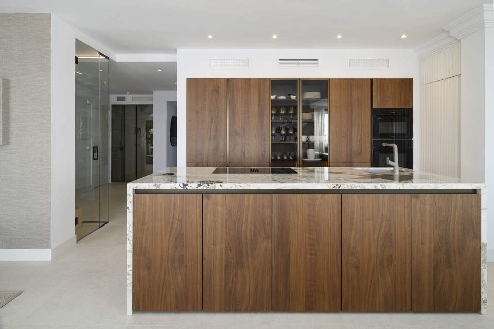 Top House Nouveau design Armoires de meubles de cuisine modulaires avec placage de bois pour villa