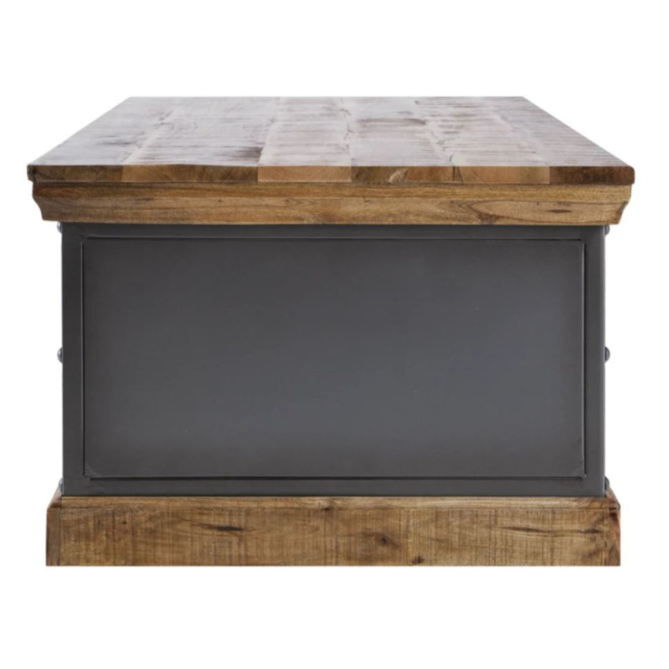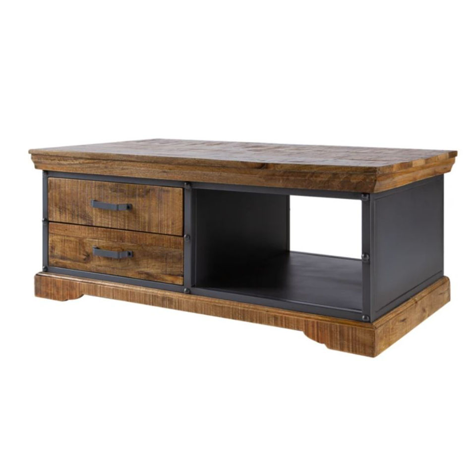 Table basse industriel, meuble de salon en bois massif et en métal, supports de rangement