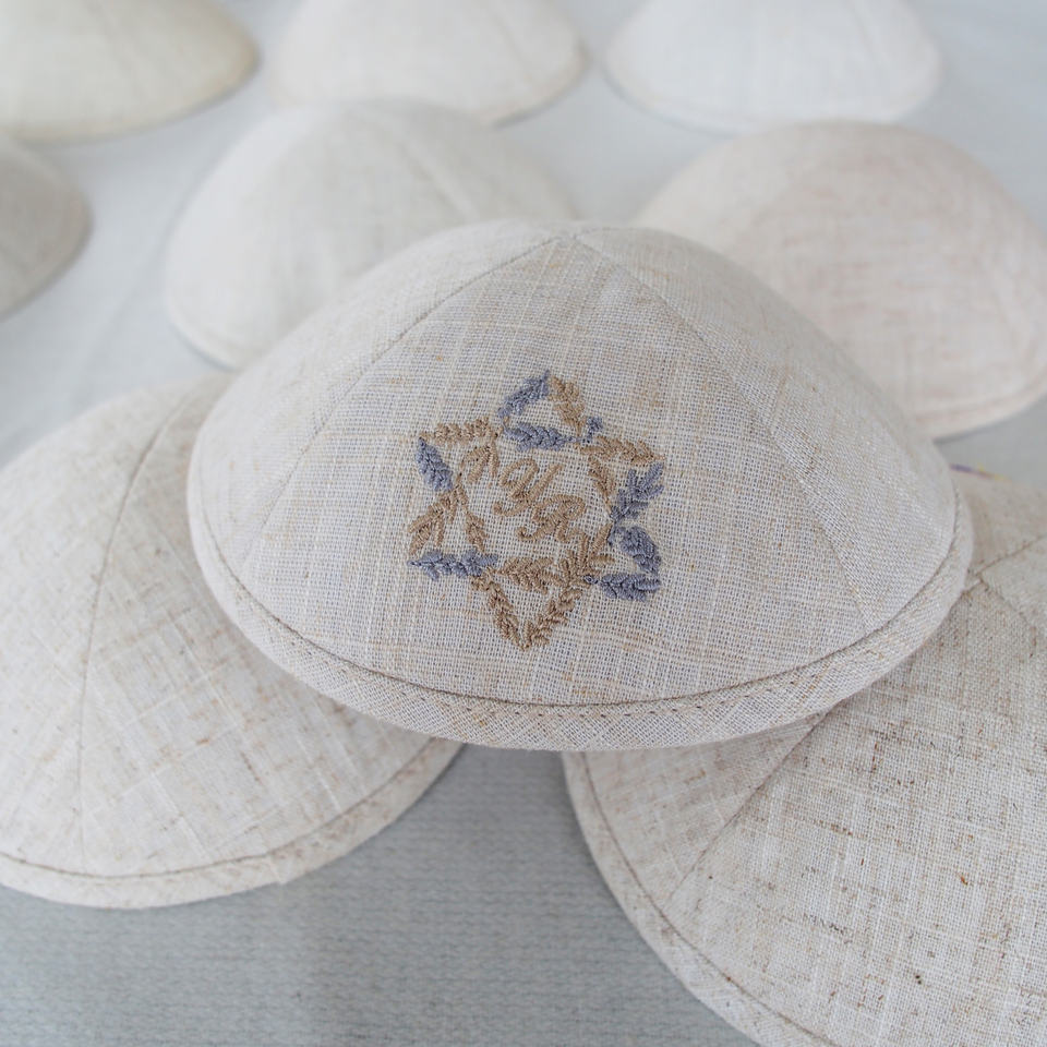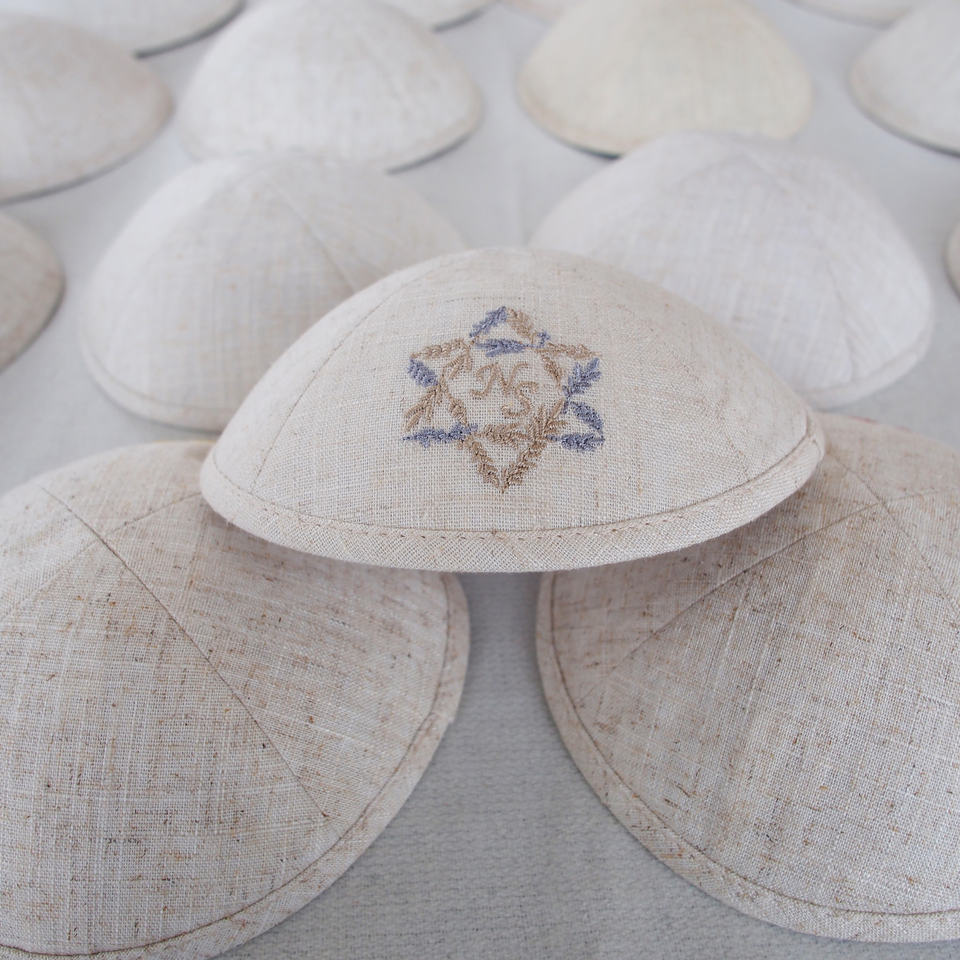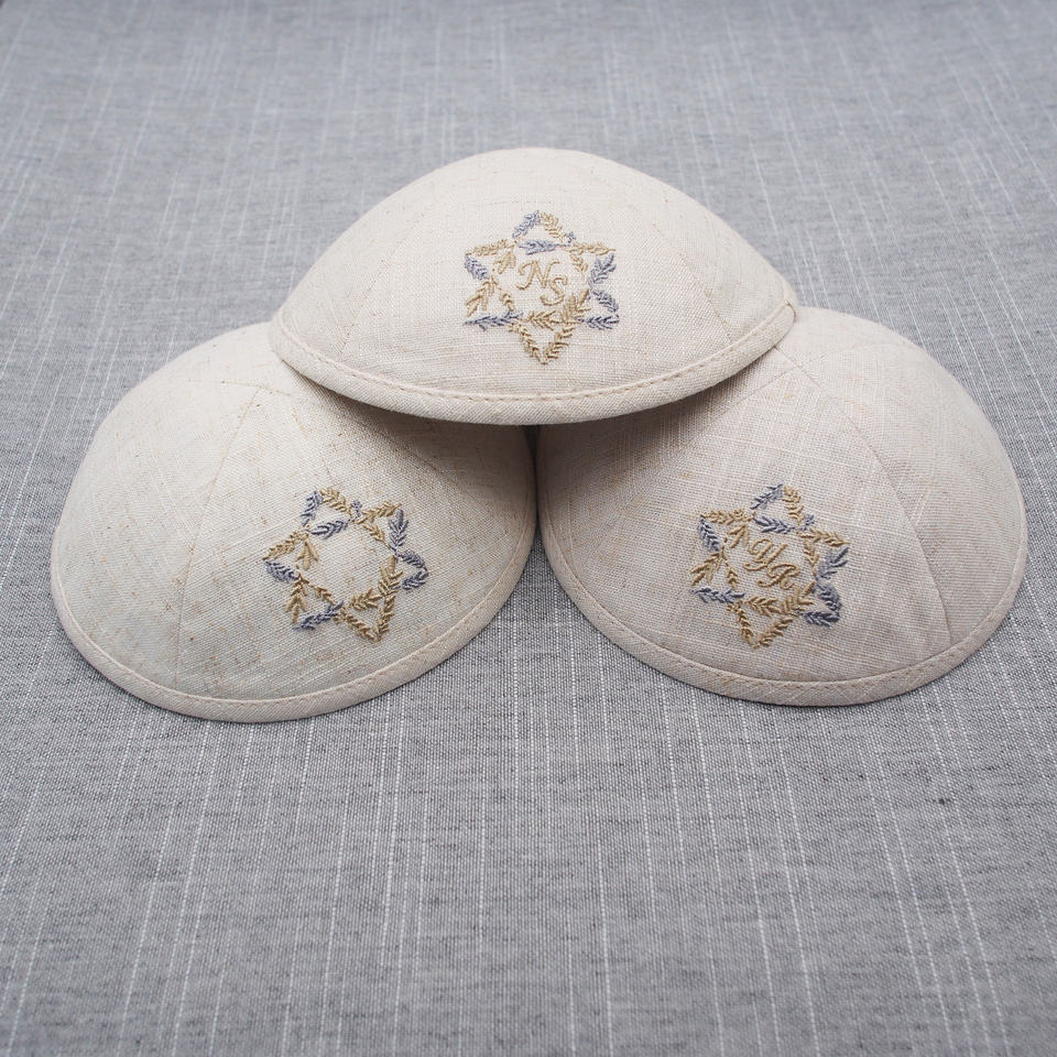 Top Kipot David Star Broderie Lin Kippah Juif Ahava Personnaliser Kippot pour Mariage Bat Mitzvah Judaica Cadeau Yarmulke