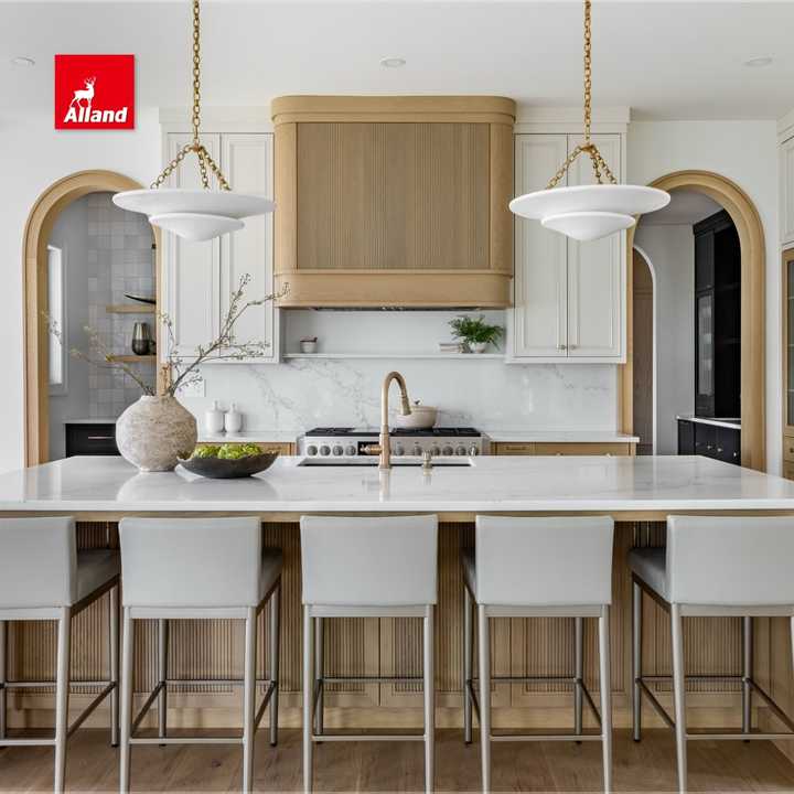En bois, Écologique, Ignifuge, Cuisine Moderne, Armoire de cuisine modulaire, Reeded Fluted Cabinet Door Panel