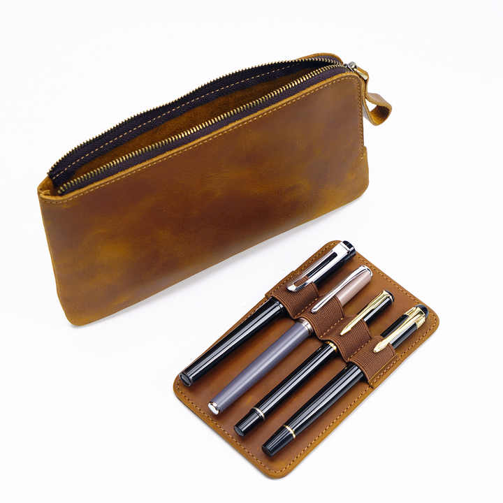 Poche supérieure de crayon de cuir de vache