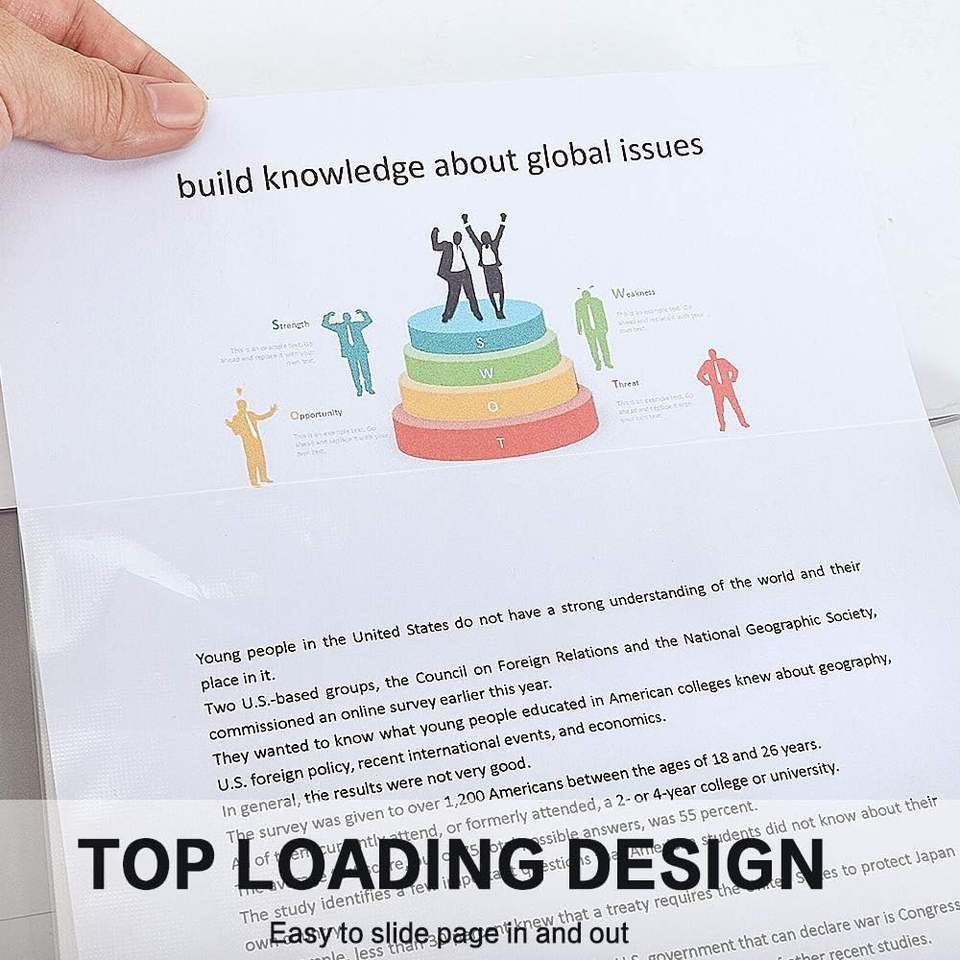 Protège-documents en plastique transparent A4 à 11 trous renforcé pour classeurs à anneaux, chargement par le haut