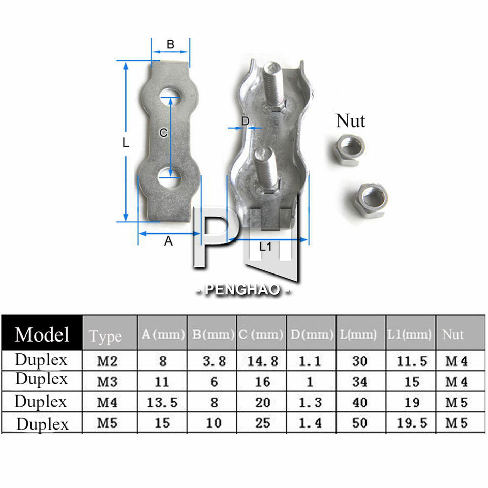 Top M2-M10 Acier Inoxydable Simplex 2-Post Boulon Clip Câble Câble Pince Étrier Corde Simple Grip
