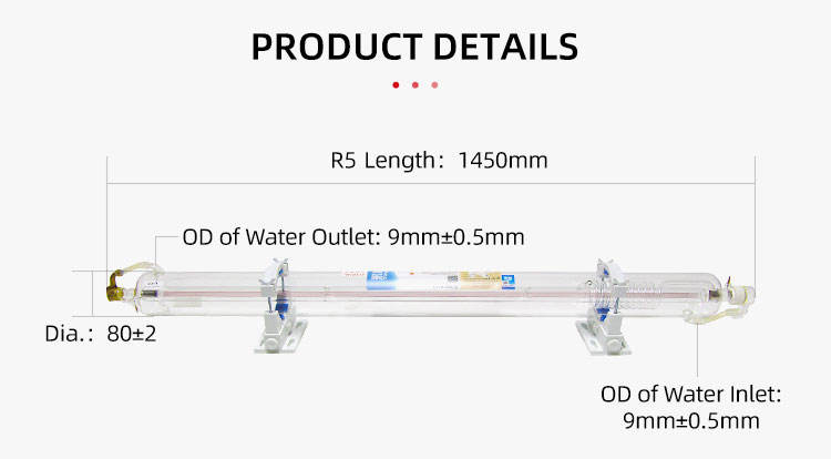 Tube laser CO2 en verre Yongli R5, processus mature et stable, 100W-120W, longueur de 1450 mm, du fabricant leader