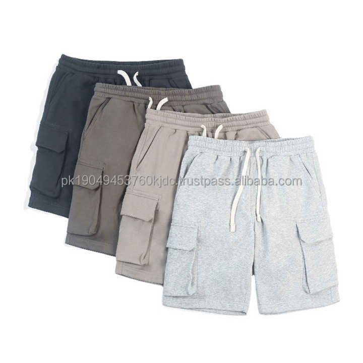 Top hommes Cargo Shorts Multi poches Streetwear décontracté hommes Cargo pantalons courts coton français éponge tissu Sweat Shorts