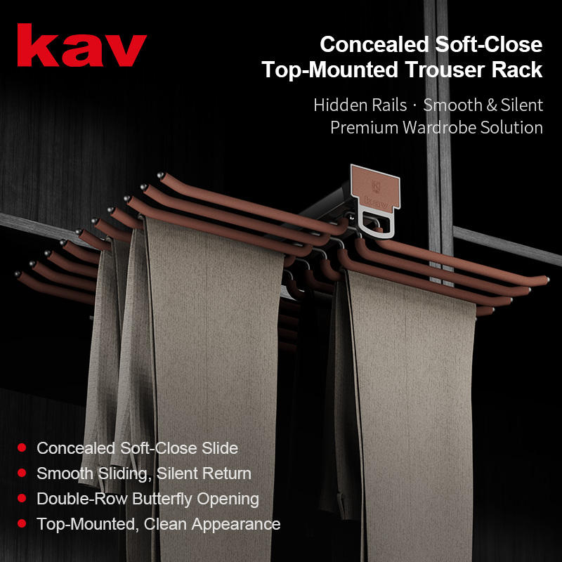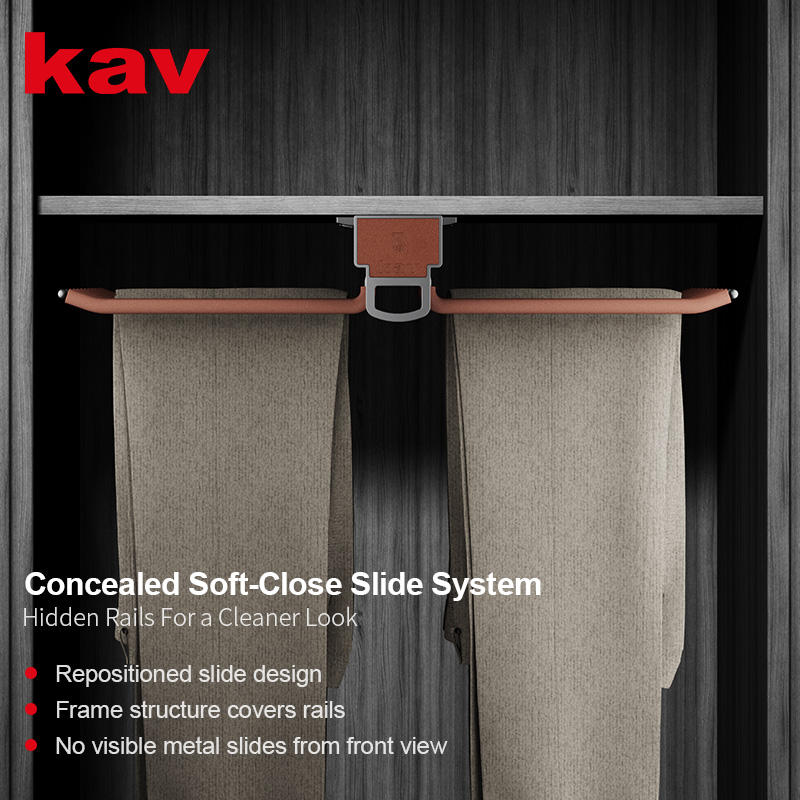 Top Mounted Soft Close Double Pants Rack with Hidden Slide for Wardrobe Furniture Hardware
