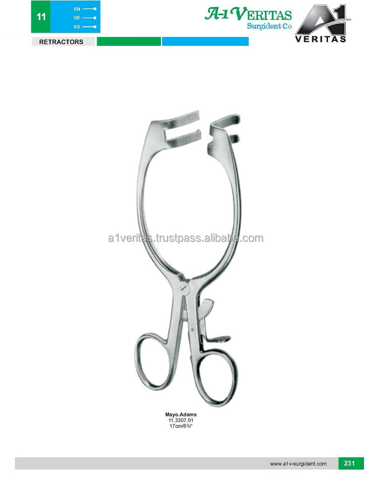 Rétracteur Mayo-Adams A-1 VERITAS de qualité supérieure, 17 cm, lames en acier en forme de U, poignée annulaire, instrument manuel | Porte-aiguille CE