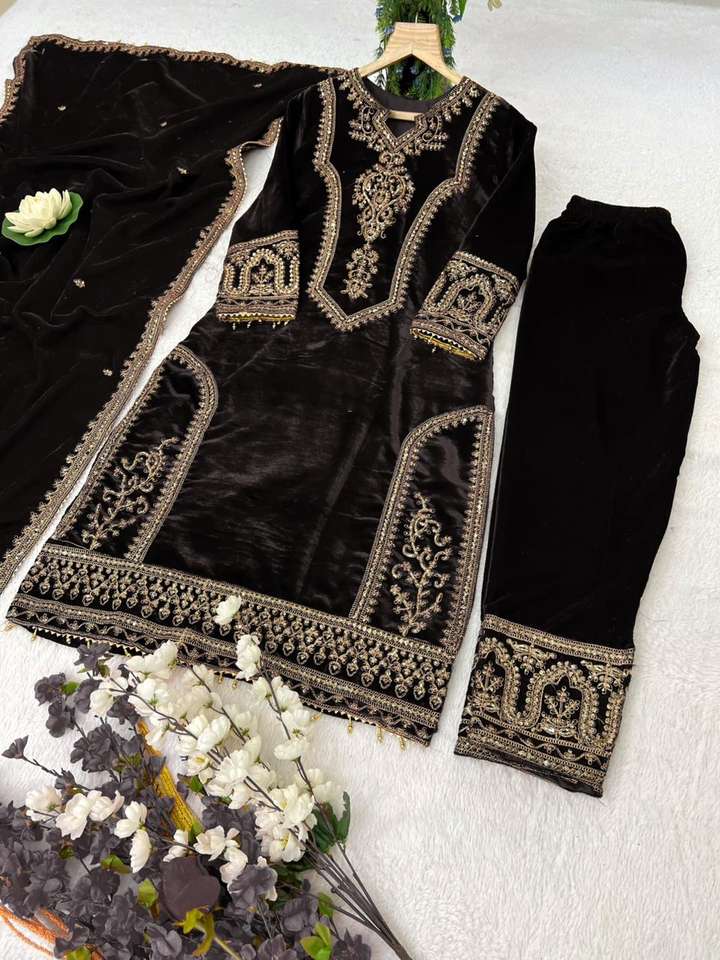 TISSU DUPATTA:Tissu en soie velours de viscose pure avec dentelle travaillée sur la bordure