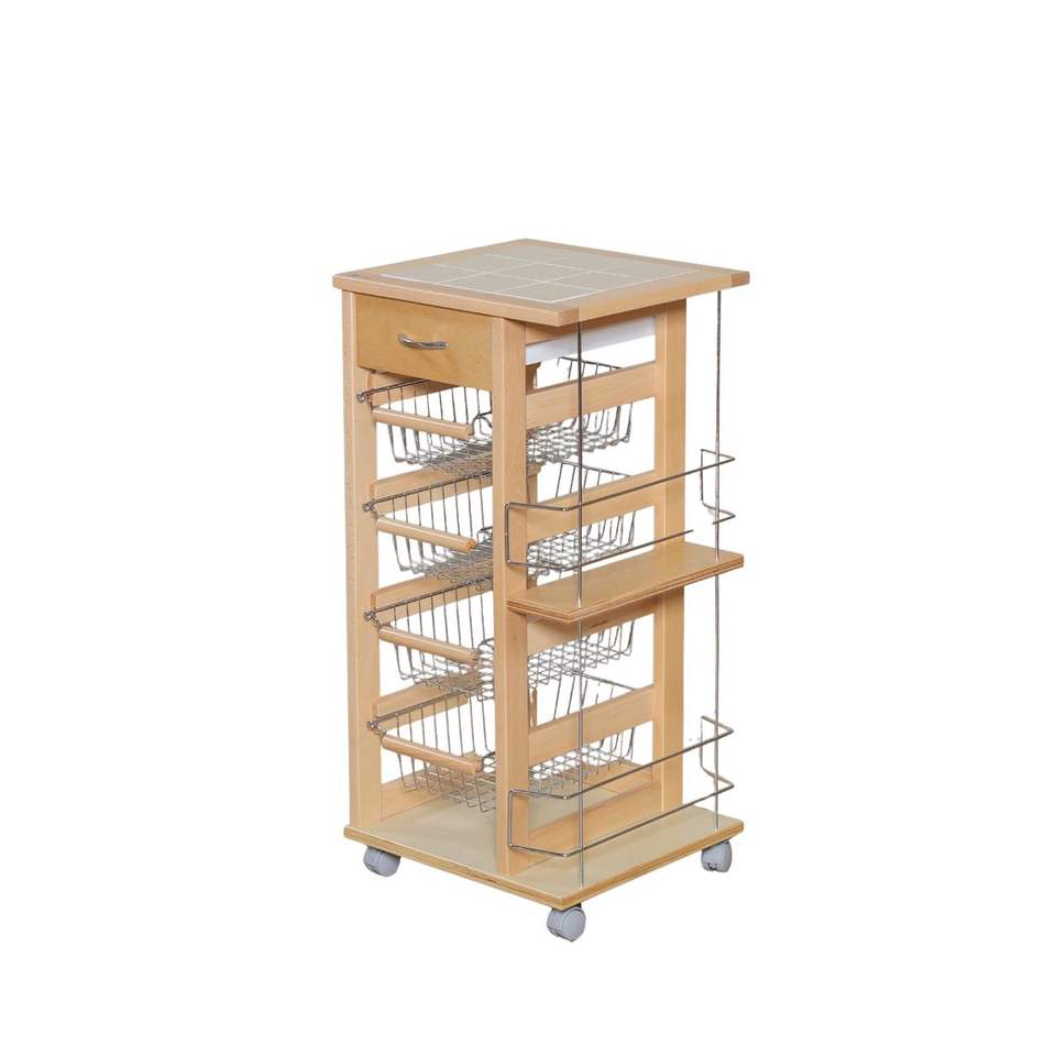 Chariot utilitaire en bois de hêtre massif de haute performance, porte-bouteilles en fer, design moderne, roues en plastique, poignées en fer pour la cuisine