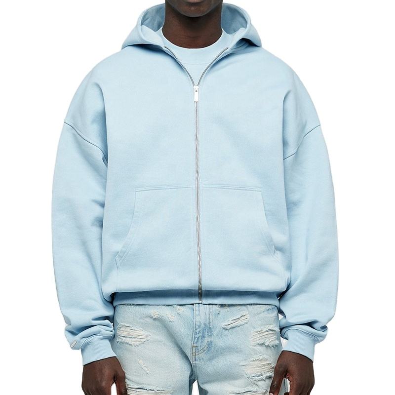 Top Qualité Logo Personnalisé Surdimensionné Fermeture Éclair Hoodies Poids Lourd Chaud Automne Hiver Solide Couleur Goutte Épaule Fermeture Éclair À Capuche