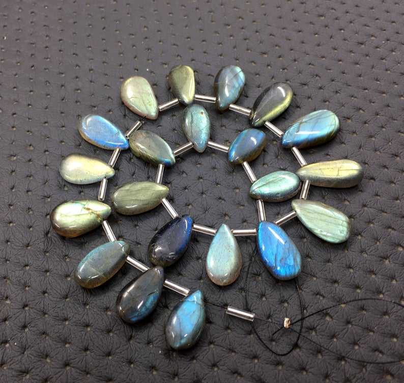 21 pièces Labradorite naturelle lisse en forme de poire pierres précieuses Briolette perles de haute qualité 1 brin perles de pierre en gros