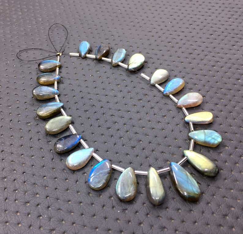 21-Piece Natural Labradorite Smooth Pear Shape Gemstone Briolette Beads High Quality 1 Strand Wholesale Stone Beads