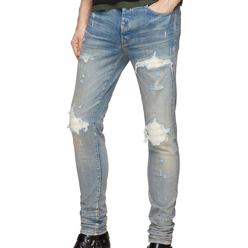 Jeans en denim stretch de qualité supérieure 100 % coton à séchage rapide Nouveau design personnalisé Stone Washed Grande taille Jeans skinny déchirés pour hommes