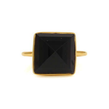 Nom du produit:Onyx noir naturel forme carrée en argent sterling plaqué or bague