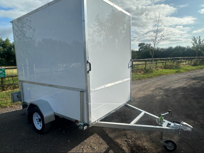 Remorque de bureau de qualité supérieure 8 pieds x 5 pieds avec fenêtre latérale, porte et doubles portes arrière en blanc