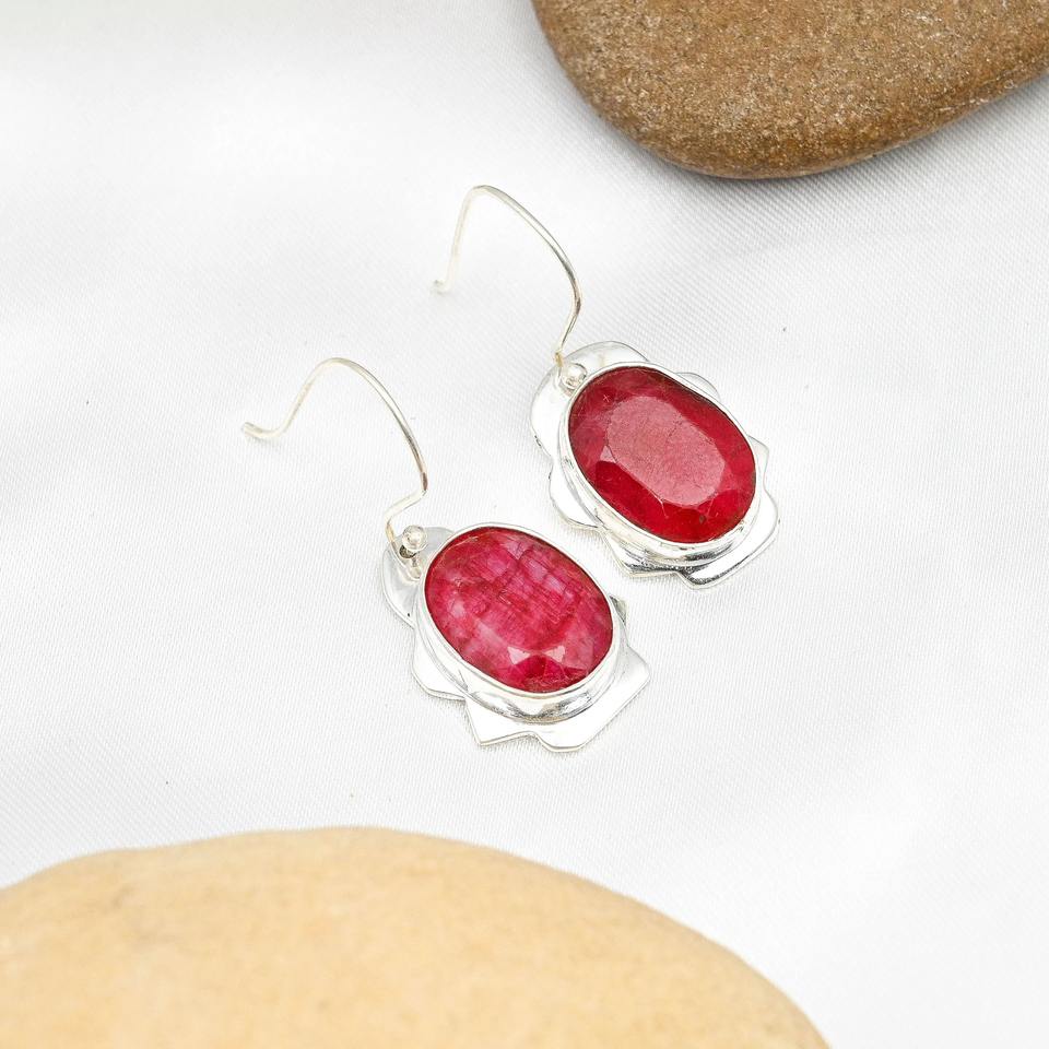 Product Name:Natural Ruby Corundum Gemstone Silver Earrings
