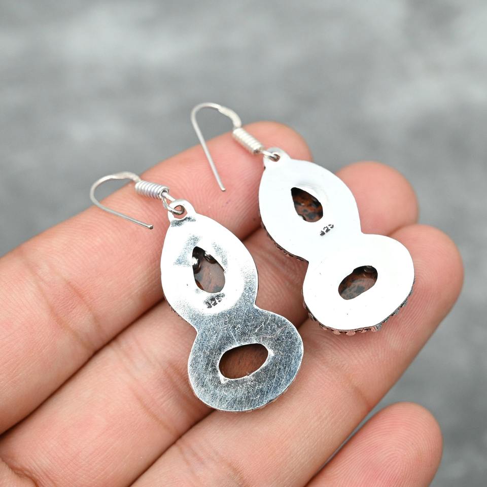 Product Name:Natural Mahogany Obsidian Gemstone Silver Earrings