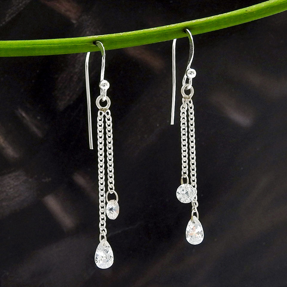 Top qualité 925 argent Sterling blanc zircon cubique luxe balancent boucle d'oreille pour femme filles bijoux faits à la main prix usine Direct