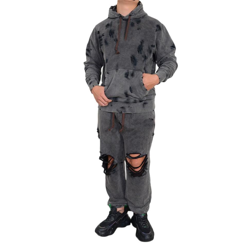 Survêtement en détresse lavé à l'acide de qualité supérieure hommes personnaliser Vintage 100% coton survêtements en détresse délavés au soleil à des prix bas