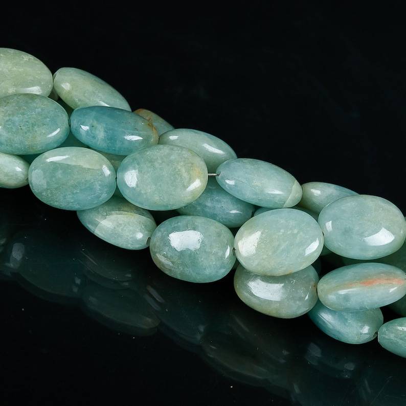 Top qualité aigue-marine lisse forme ovale perles de pierres précieuses en vrac 10X14mm perles d'aigue-marine bleue pour la fabrication de bijoux prix de gros
