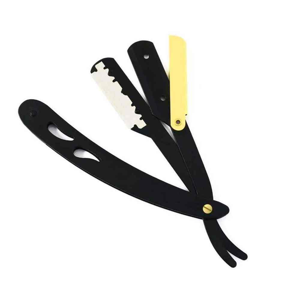 Rasoirs de rasage de barbier de qualité supérieure rasoir de rasage en acier inoxydable à bord droit enduit de couleur noire, pochette en cuir à la demande