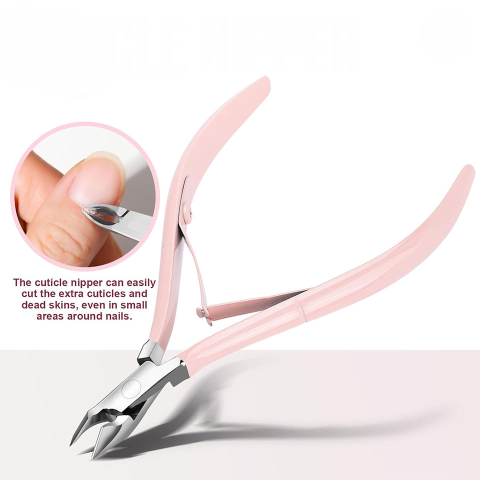 Kit de beauté de qualité supérieure poignée enduite rose ensemble de manucure en acier inoxydable pince à ongles poussoir à ongles fins