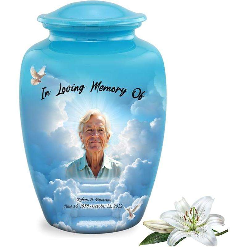 Top Qualité Meilleure Vente Urnes Crémation Cendres Humaines pour Adulte Grandes Urnes En Métal De Crémation Haute En Aluminium avec Design Peint