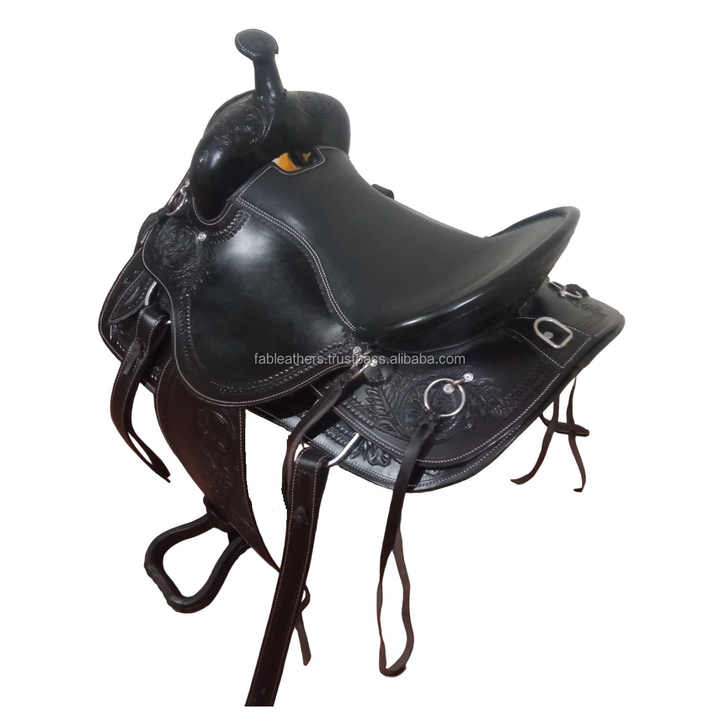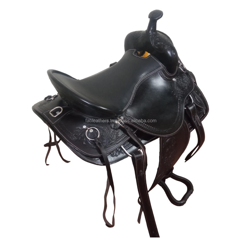 Selle de cheval d'endurance noire de course de baril occidental la plus vendue de qualité supérieure en cuir véritable avec jeu de punaises