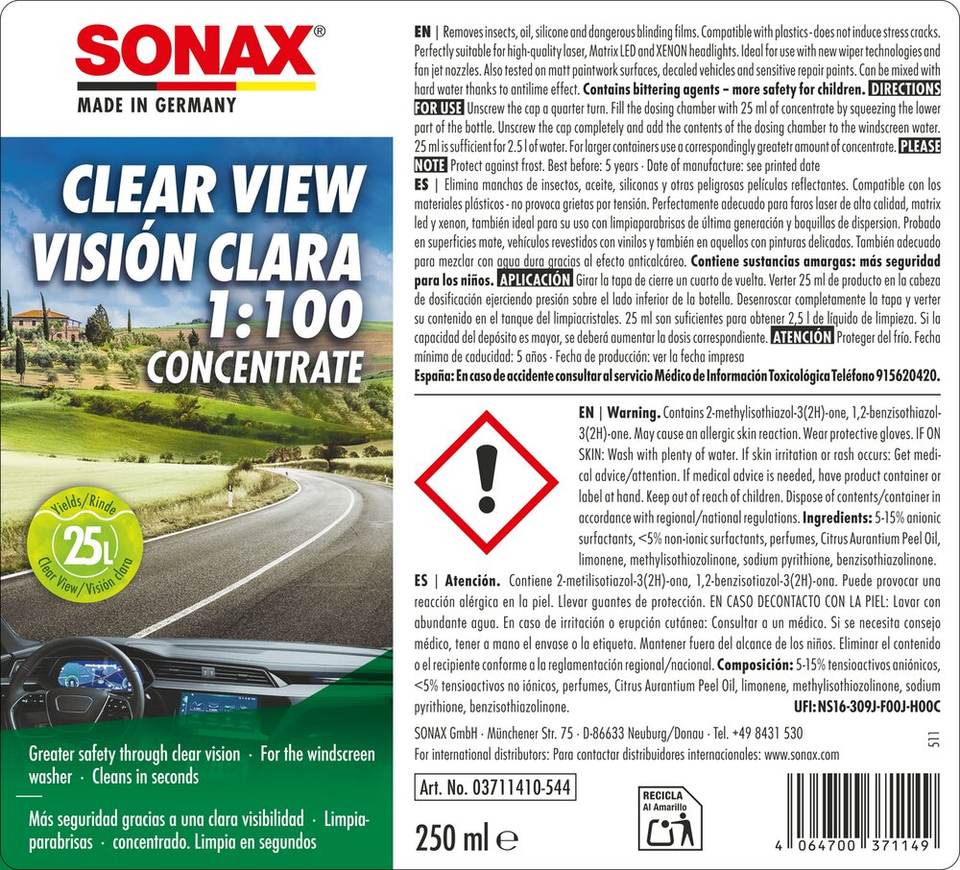 Concentré de lave-glace Top Quality Clear Sight 1:100 250ml pour une utilisation estivale et une visibilité claire