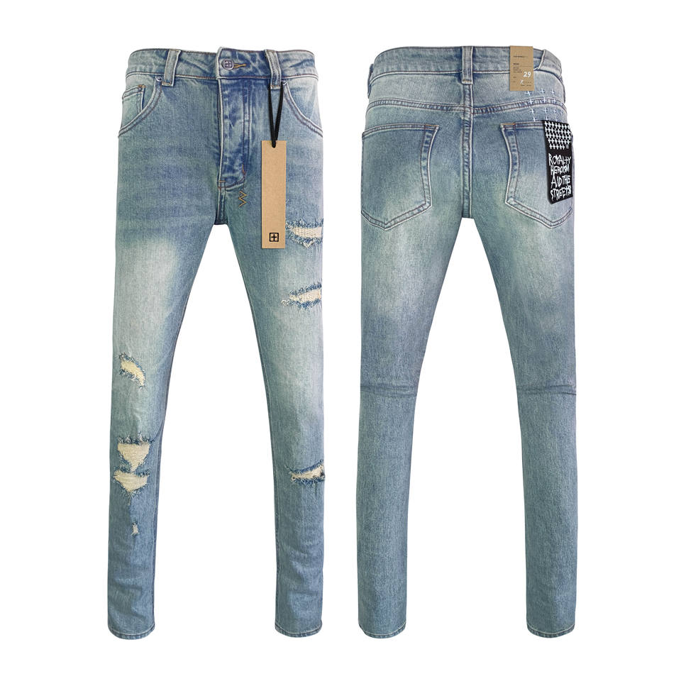 Jean Ksubing en denim pour homme, broderie personnalisée de qualité supérieure, coupe slim, délavé, style streetwear hip-hop pour l'hiver
