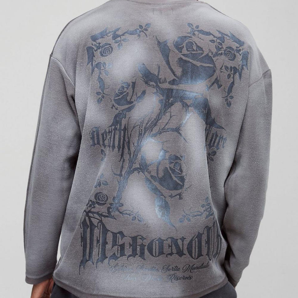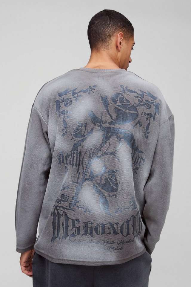 Logo personnalisé de qualité supérieure nouveau t-shirt charbon de bois surdimensionné en détresse boucle inversée imprimé gothique à manches longues T-Shirt de lavage par pulvérisation