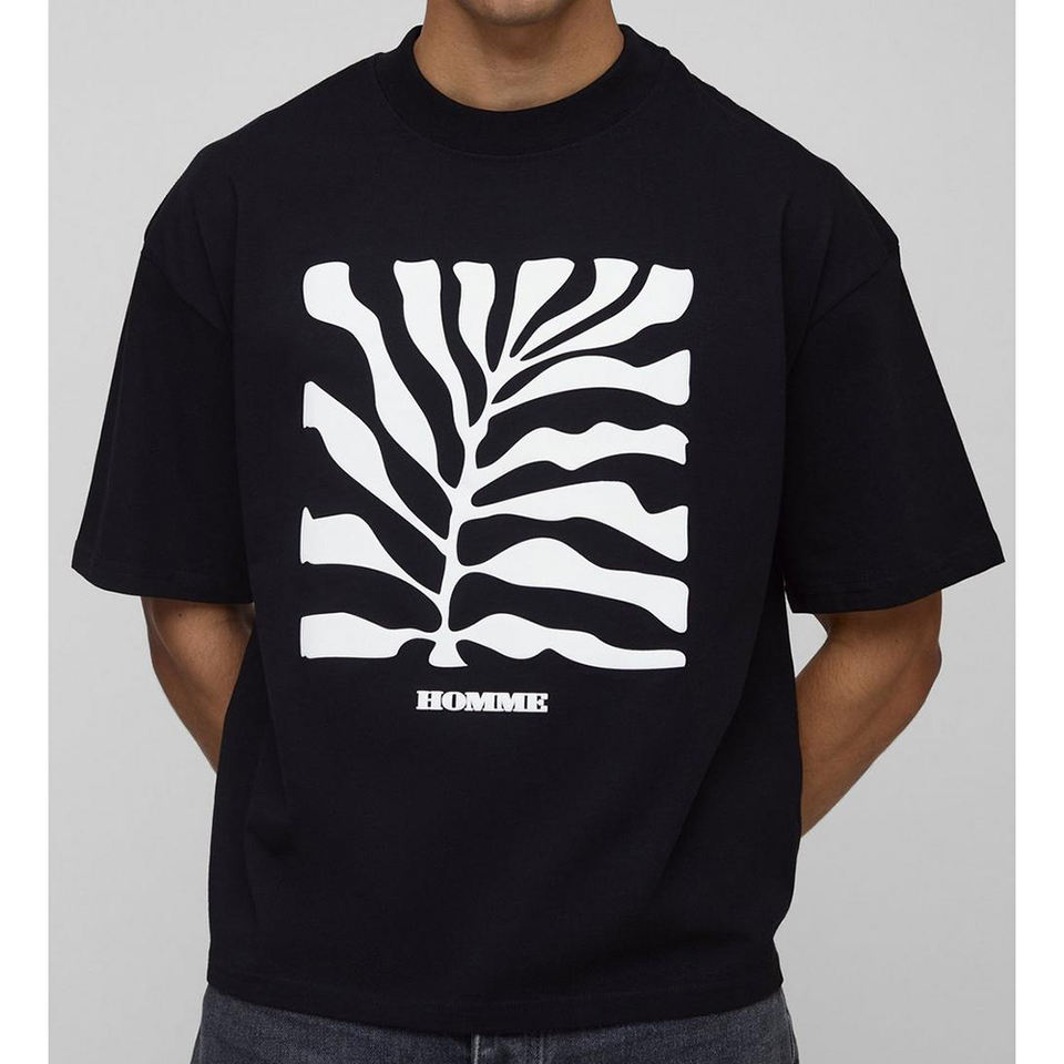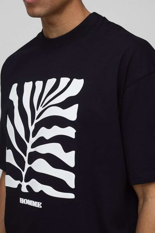 Top qualité sur mesure noir surdimensionné Boxy feuille bouffée impression T-Shirt hommes imprimé T-Shirt conception personnalisée Logo impression chemise