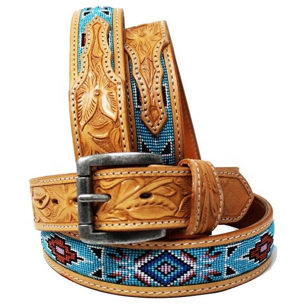 Ceinture en cuir de vache occidental, 100%, cuir de vache de haute qualité, sur mesure, avec travail avec perles, fabrication florales gaufré pour hommes et femmes