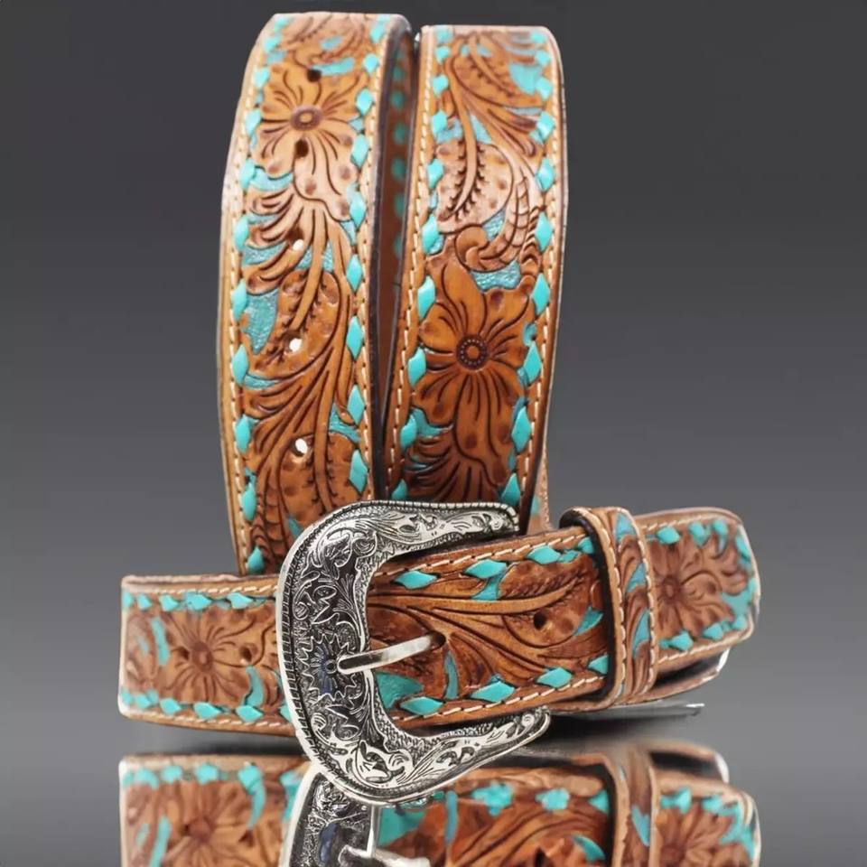 Ceinture en cuir de vache occidentale de qualité supérieure sur mesure de qualité supérieure avec grossiste en design floral usiné à la main Fabricant