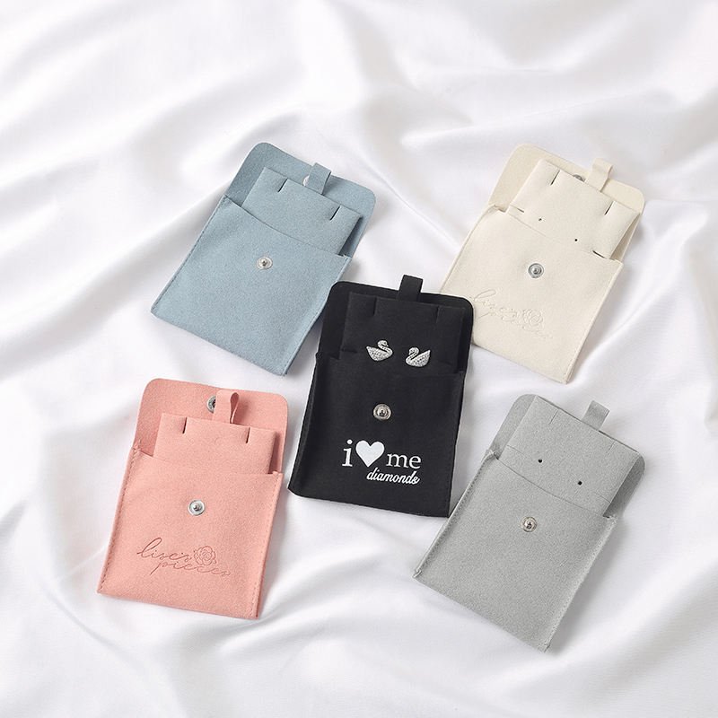 Top Quality Custom Printing Microfiber Jewelry Pouch Velvet Gift Pouches Envelope Flap with Logo Printed Debossed Insert Pad