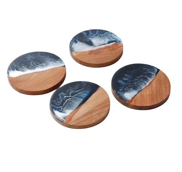 Top qualité personnaliser sous-verre en gros bois et résine sous-verres ensemble carré rond Design thé tasse à café bois résine sous-verre