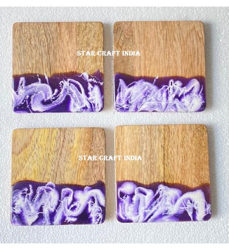 Top qualité personnaliser boisson bière thé café carré rond bambou bois résine époxy sous-verre avec support ensemble