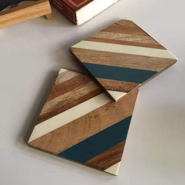 Dessous de verre en résine époxy carré rond personnalisé de qualité supérieure avec support ensemble porte-gobelet de canapé pour thé café