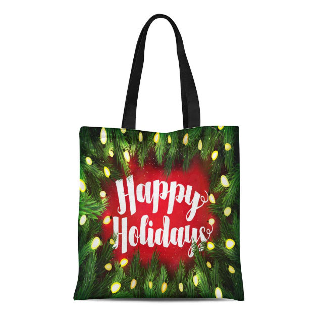 Sac fourre-tout de Noël personnalisé de qualité supérieure, motif de style d'articles en soie personnalisé, lettre de promotion, États-Unis