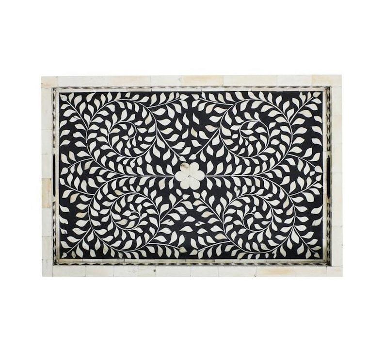Plateau de service en nacre et incrustation d'os floral personnalisé de qualité supérieure, plateau en bois naturel fabriqué à la main pour la maison, l'hôtel