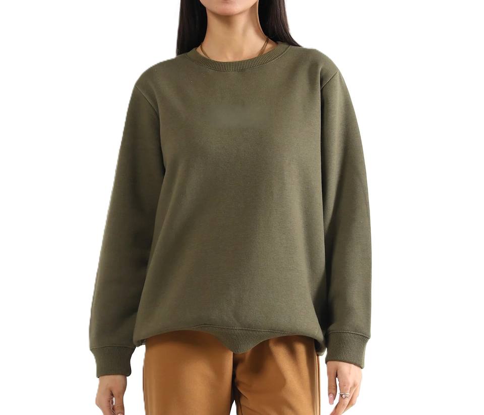 Top qualité personnalisé votre propre Logo à manches longues coupe ample côtelé col rond coton Polyester polaire poignets femmes sweat confortable