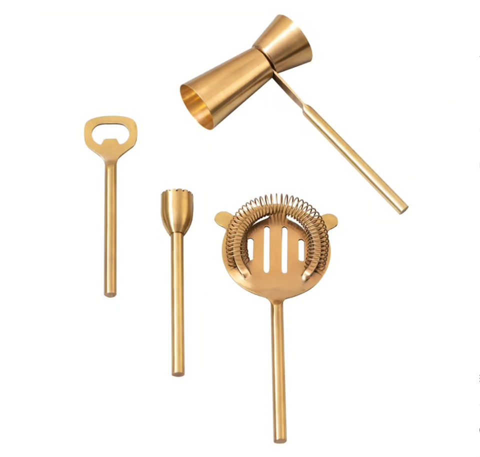 Ambiance Lifestyle Ensemble de couverts en acier inoxydable de haute qualité 4 outils de shaker avec placage en laiton pour le barman de fête