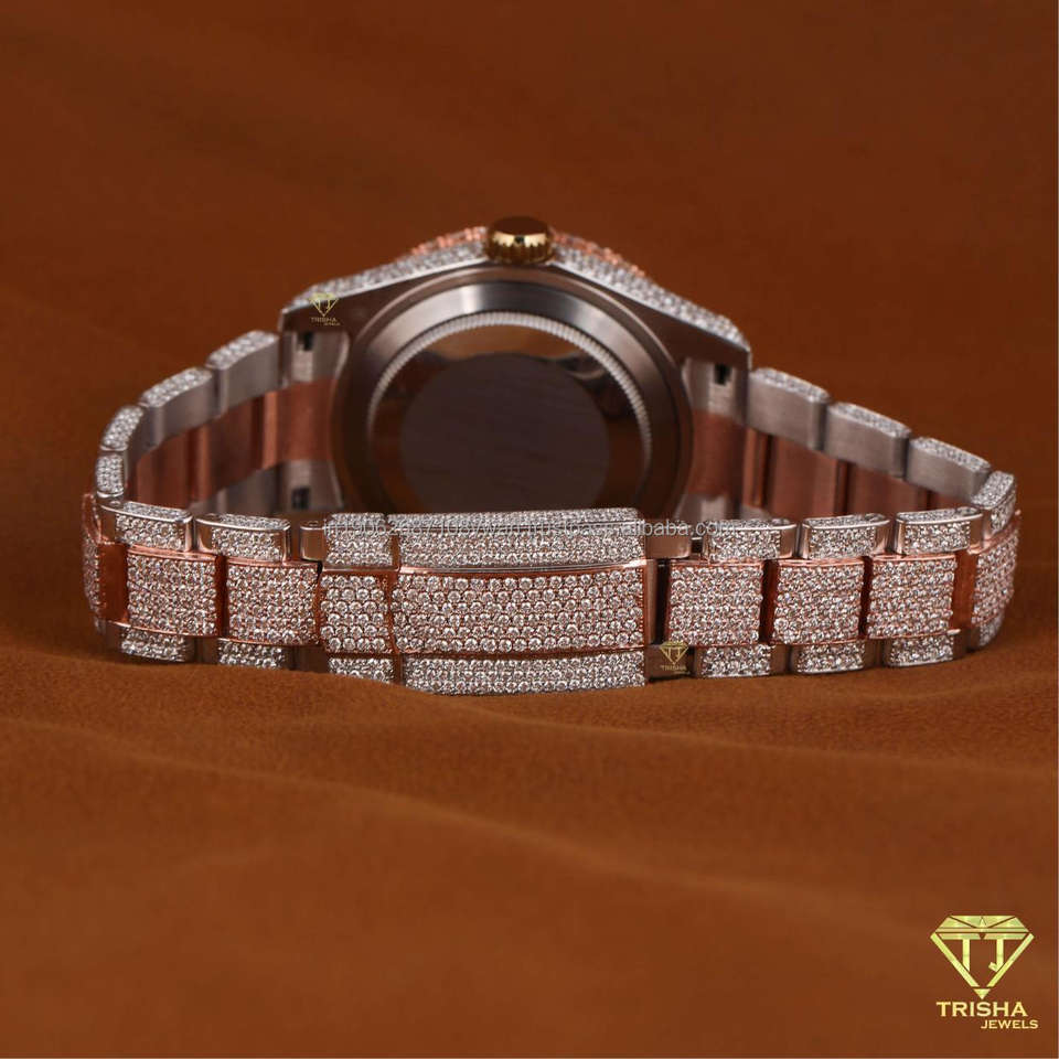 Montre pour homme de haute qualité, design bicolore, sertie de diamants VVS cultivés en laboratoire, en argent sterling 925