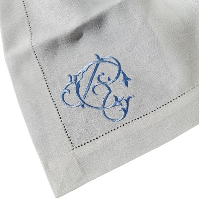 Serviettes et napperons en lin/coton d'usine directe de qualité supérieure serviette brodée à bord festonné pour les fêtes de mariage