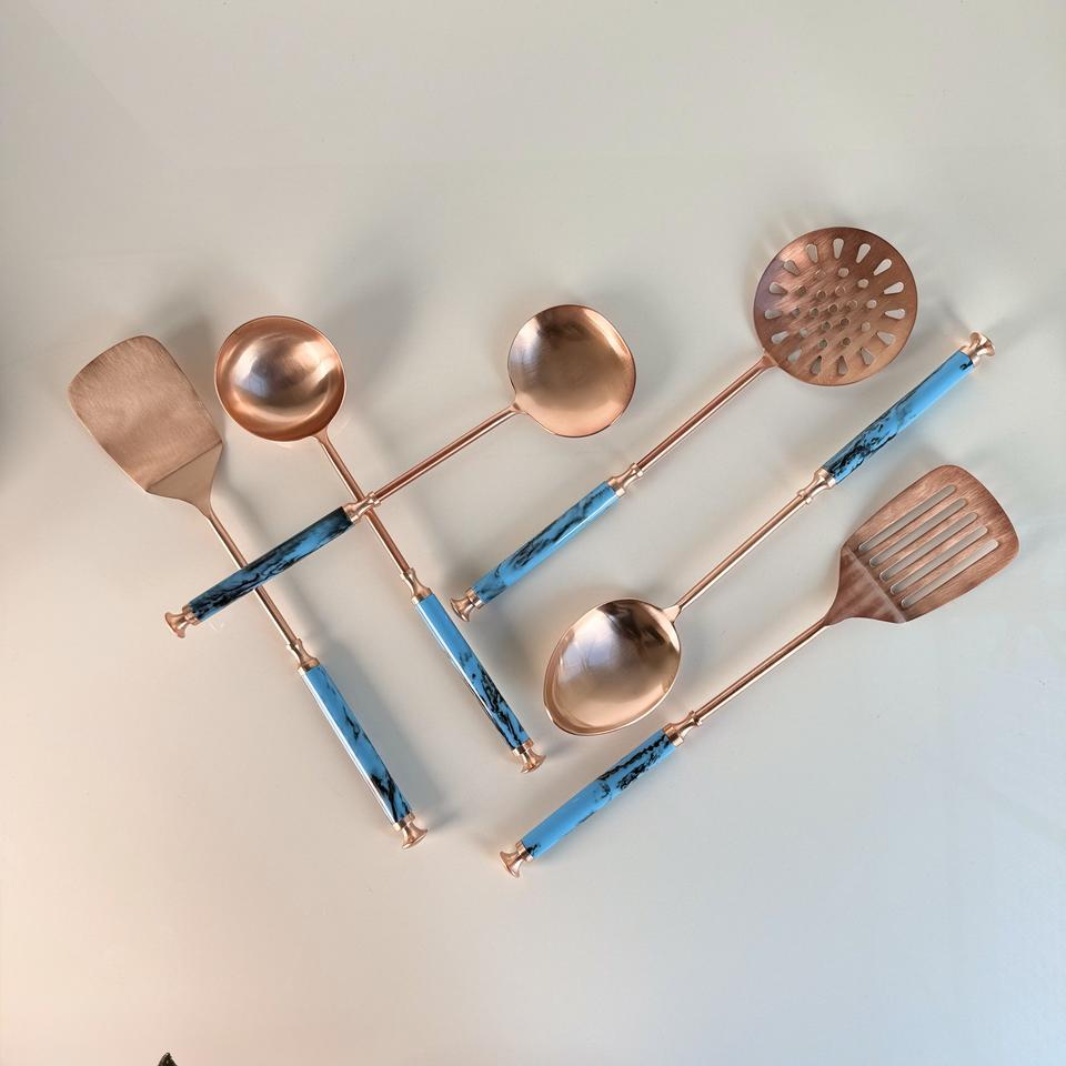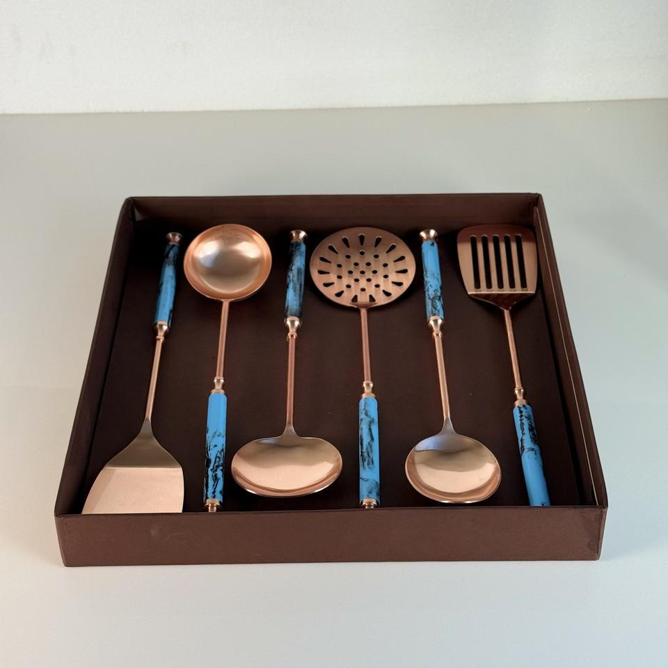 Ensemble d'ustensiles de cuisine de qualité supérieure en acier inoxydable avec finition cuivre durable, poignée en résine et boîte