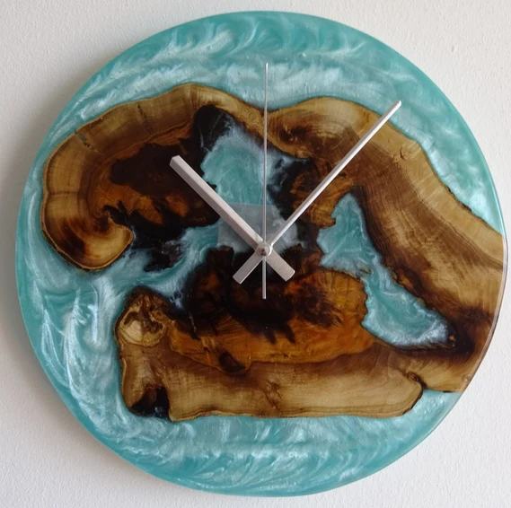 Horloge murale en résine époxy de qualité supérieure et bois rustique, idéale pour offrir et décorer la maison. Pièce décorative luxueuse pour restaurant et hôtel.